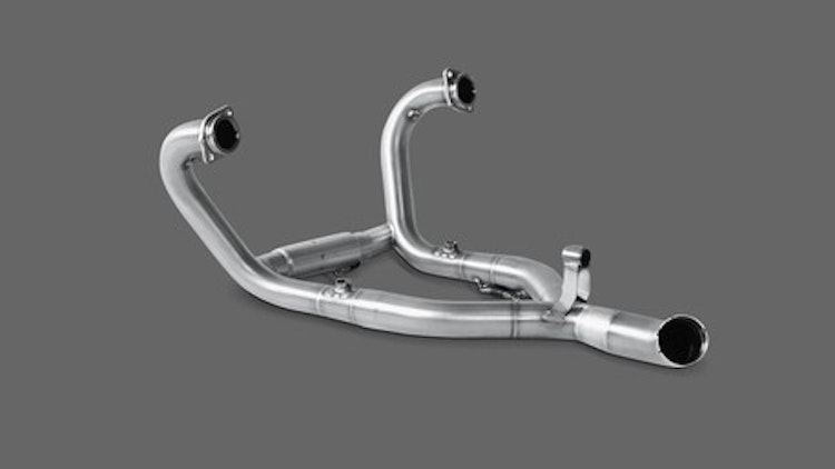 Edelstahl-Krümmer rüsten zu einem kompletten System auf, das Leistung und einzigartigen Akrapovič-Klang bietet.