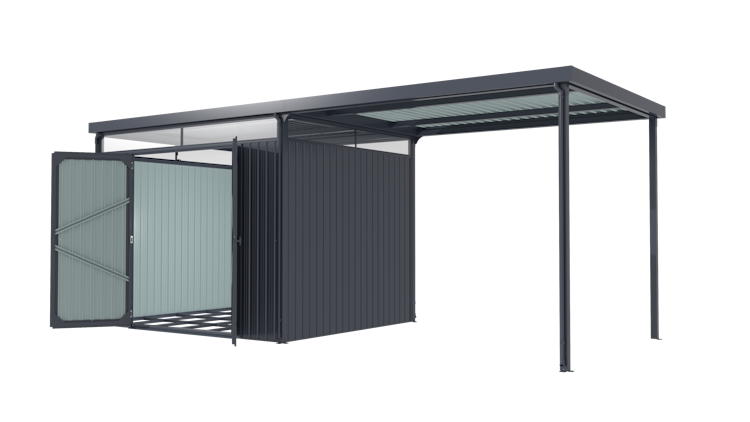 Zusätzlichen Stauraum schafft das zusätzliche Schleppdach, das optional erhältlich ist. Es erweitert den überdachten Bereich um weitere 6,63 Quadratmeter: Perfekt für Fahrräder und alle Dinge, für die der trockene Platz und der schnelle Zugriff ähnlich wichtig sind.