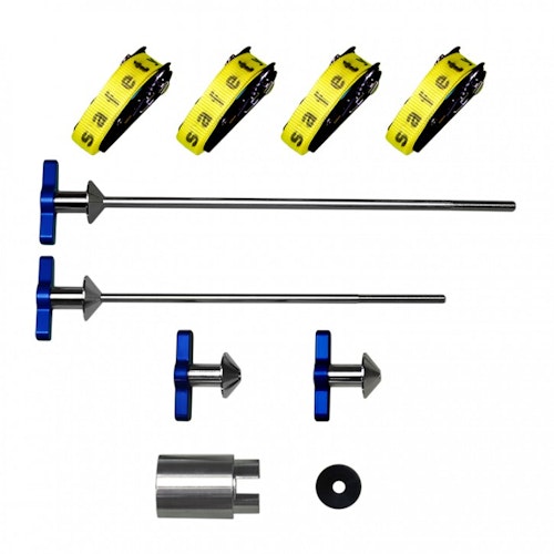 - Schnelles Abspannen mit einer Welle, die durch die Hohlachse deines Motorrads geschoben wird