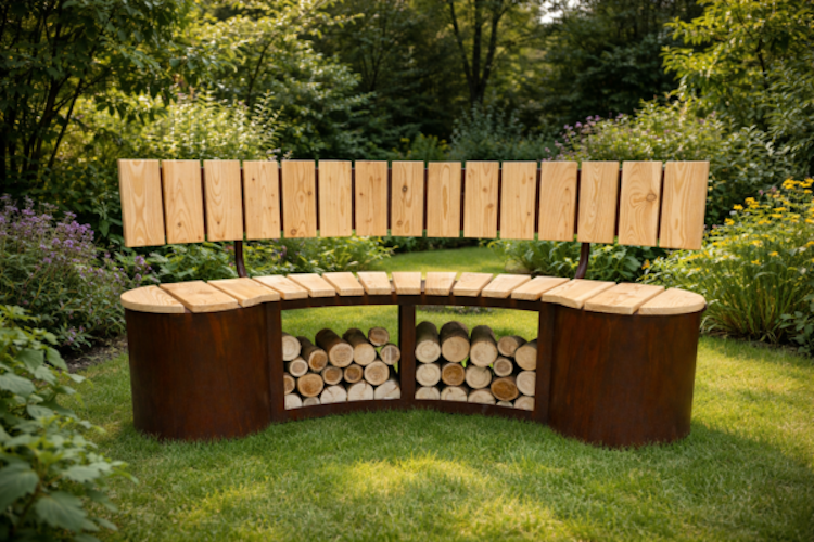 Die Sitzfläche und die Lehne bestehen aus hochwertigem Lärchenholz, das für eine besonders ansprechende Optik sorgt. Der offene Bereich unter der Sitzfläche eignet sich ideal zur Aufbewahrung von Brenn- oder Scheitholz. Wie alle Badeko Artikel vollständig "Made in Germany".
