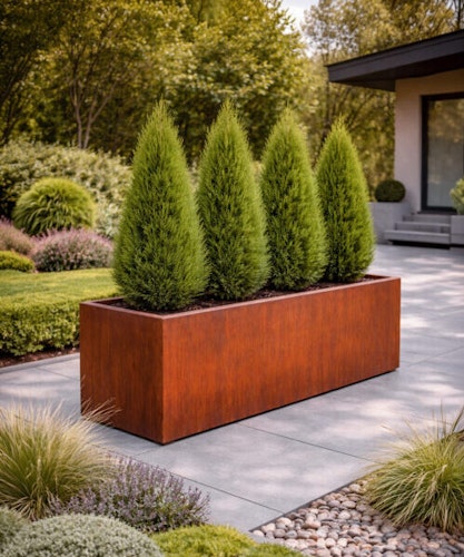 - Sonderanfertigungen möglich: Die Hochbeete und Pflanzeinfassungen werden exakt nach Ihren Vorgaben in Länge, Höhe und Form gefertigt – robust verarbeitet und mit zeitlosem Design für jeden Garten. Wahlweise mit Zwischenboden, per Hubwagen transportierbar und auf Wunsch mit Spezial-Öl für eine gleichmäßige Edelrost-Patina. Bitte geben Sie uns Ihre Wunschmaße und Ausführungswünsche über unser Kontaktformular an, Sie erhalten dann umgehend ein Angebot.