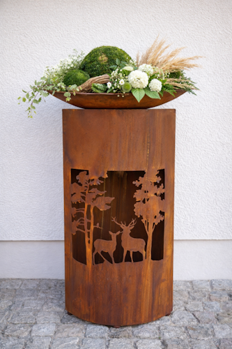 Stilvolles Badeko-Set „Nova Hirsch“ – bestehend aus Säule, Schale und Kugel mit filigranen Hirschmotiven. Gefertigt aus robustem Metall, wetterfest und langlebig, ist es ein dekoratives Highlight für Garten, Terrasse oder Eingangsbereich. Inklusive Außenbeleuchtung für Säule und Kugel – für stimmungsvolle Akzente bei Tag und Nacht.