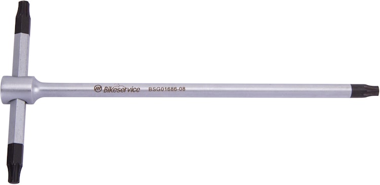 Der Bikeservice T-Griff Schraubendreher mit Innensechsrund ist durchgehend gehärtet, Spitze brüniert (bei T27, T30, T40, T45), und aus Chrom Vanadium gefertigt. Der T-Griff kann in drei Positionen eingerastet werden für zusätzliche Hebelwirkungen.