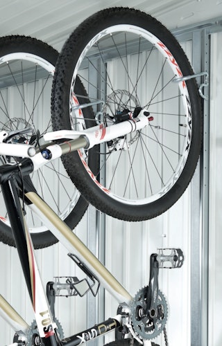 Mit der Biohort Fahrradaufhängung BikeMax können Sie Ihre Fahrräder bis zu einer Größe von 26-Zoll platzsparend in Ihrem Biohort Metall Gerätehaus aufbewahren. Im Geräteschrank können Sie aufgrund der Bauhöhe maximal Kinderfahrräder bis 24 Zoll aufbewahren. Der Aufhängehaken ist zudem 6-fach höhenverstellbar. Überdies ist eine Absperröse für Fahrradschlösser bereits integriert.