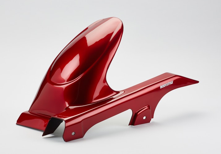 Die BODYSTYLE Sportsline Hinterradabdeckung bringt sportlich dynamische Konturen in Originalfarbe an das Hinterrad von Sport- und Naked-Bikes. Das Styling Part aus hochfestem ABS Kunststoff bietet idealen Spritzschutz für das Zentralfederbein. Mit ABE.