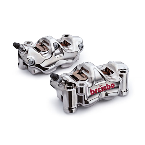 Hochleistungs-Radialbremssattel-Kit aus massivem Aluminium mit Nickel-Finish und 32 mm Kolben für maximale Bremskraft und MotoGP-Feeling auf der Straße.