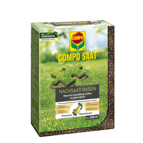 Dank der besonders hochwertigen Rasensamen-Mischung aus ausgewählten Spitzensorten, ist der COMPO SAAT Nachsaat-Rasen ideal für die Nachsaat und Reparatur bei allen Rasenflächen geeignet. Aufgrund einer innovativen Profi-Saatgutveredelung mit BIO-Saathülle kommt es zu einer sicheren Keimung - auch bei ungünstigen Umweltbedingungen. Zudem erhöht sich die Widerstandsfähigkeit des Rasens, wodurch dieser deutlich weniger anfällig gegen unerwünschte Krankheiten wird. Die einzigartige Grünfärbung dieses Saatguts ist bei der Nachsaat besonders wichtig, da ein Einharken in den Boden häufig nicht erfolgt und die Samen dadurch schutzlos aufliegen können. Die Keimlinge nehmen aufgrund dieser Einfärbung mehr Feuchtigkeit auf und sprießen deutlich sicherer. Entstandene Lücken oder kahle Stellen werden schneller wieder verschlossen, wodurch der Rasen deutlich belastbarer, strapazierfähiger und vorallem dauerhaft Grüner wird. Zur Frühaussaat ist die Rasensamen-Mischung bereits ab 5° C Bodentemperatur möglich.