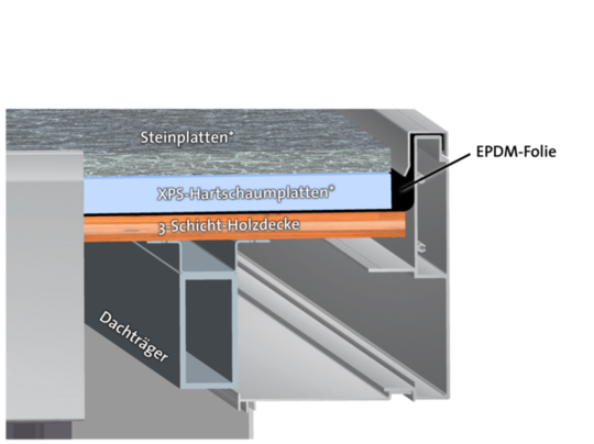 Dieses Dachisolierungs-Komplettset enthält die passende Menge an Styrodurplatten zur Dachdämmung des Biohort Casanovas. Das Dach kann bauseits mit XPS-Hartschaumplatten (30 mm) wärmegedämmt werden. Diese werden einfach auf die UV-beständige EPDM-Folie gelegt und beschwert, siehe Skizze. Die Beschwerung kann mit Steinplatten, einem Holz-Lattenrost oder Rundkies (16 / 32-Körnung) erfolgen. Wird Kies verwendet, sollten die XPS-Hartschaumplatten vorher mit Vlies abgedeckt werden, damit keine Kies in die Fugen der Dämmplatten eindringt. Mit einer Isolierung von 3 cm erreicht man beim Dach einen U-Wert von ca. 0,8 W/(m²K).
