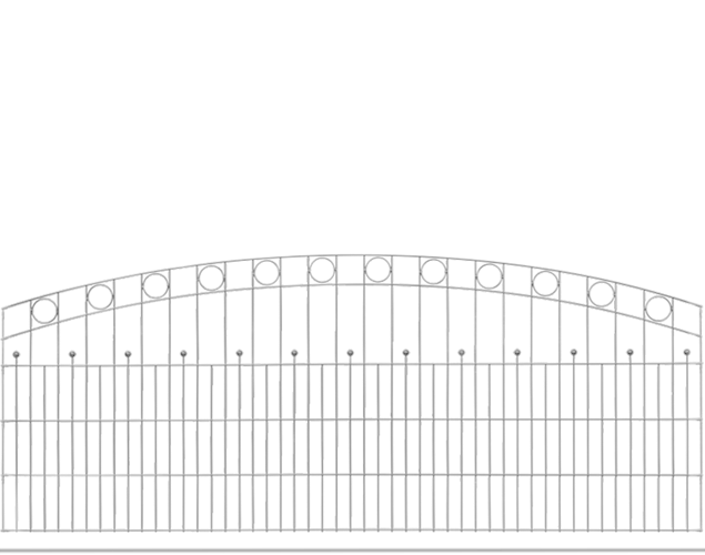 Hochwertige Schmuckzaunmatte Residenz standard WIEN von dz mit klassischen Kreisornamenten und Zierkugeln im Oberbogen der Doppelstabmatte.