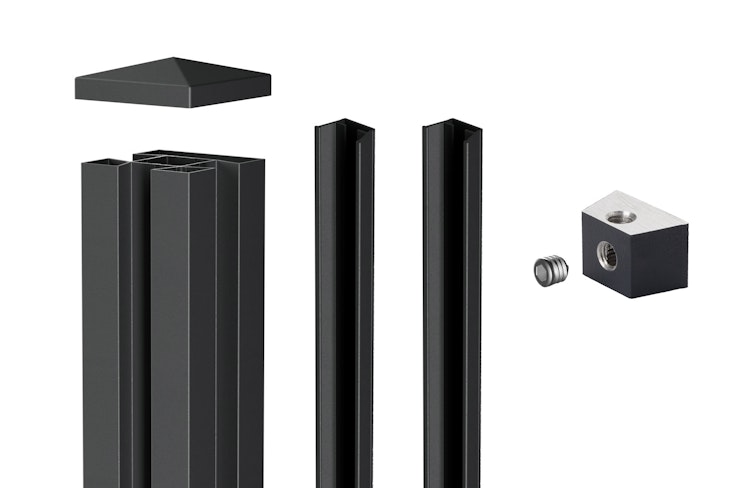 | Lieferumfang | Pfosten, Abdeckkappe, Nutsteine und Abdeckleisten |