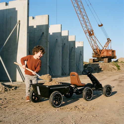 Der EXIT Foxy Gokart Anhänger in Schwarz ist die ideale Ergänzung für alle EXIT Foxy Gokarts und sorgt für noch mehr Spielmöglichkeiten. Ob Sand, Spielzeug oder kleine Schätze – mit einer Tragkraft von bis zu 10 kg lassen sich Transporte kinderleicht erledigen. Dank robuster Bauweise, pannensicherer EVA-Reifen und praktischer Kippfunktion ist der Anhänger stabil, leicht zu bedienen und perfekt für kleine Transportabenteuer.