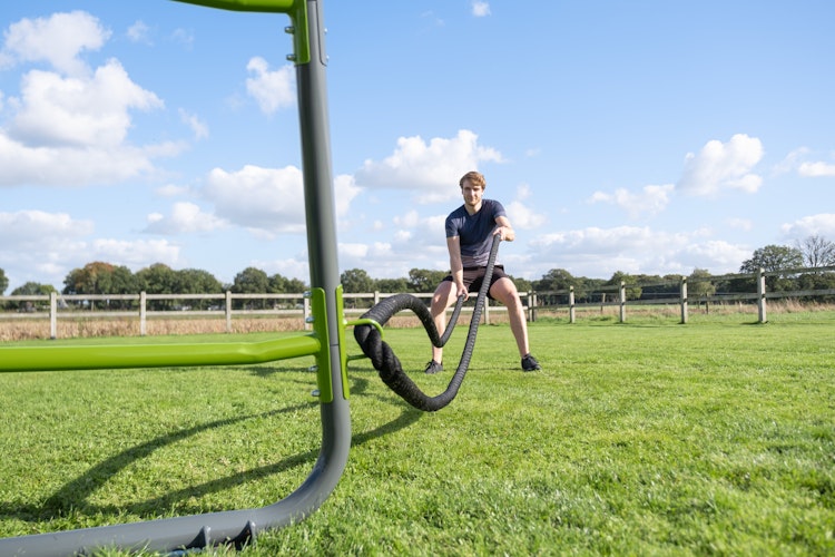 EXIT GetSet Battle Rope-Ringe MB200 / MB300 / PS500 / PS600 (Set von 2).Mit diesen beiden Battle Rope-Ringen, die für alle GetSet Monkeybars und Powerstations geeignet sind, kannst du mühelos Battle Ropes an deinem GetSet-Gerät anbringen. Mit einem Battle Rope kannst du ein schlagkräftiges Seiltraining absolvieren und allerlei Übungen hinzufügen. Du trainierst damit zum Beispiel Arm-, Schulter- oder Beinmuskeln. Die schwarzen Ringe bestehen aus galvanisiertem und pulverbeschichtetem Stahl. Dadurch ist das Material kratzfest, witterungs- und korrosionsbeständig und hat eine lange Lebensdauer. Die Ringe lassen sich mühelos am GetSet anbringen.