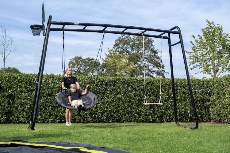 Die EXIT GetSet Monkeybar MB305 in Grau ist eine vielseitige Sport- und Spielstation für den Garten, die Bewegung, Spiel und gemeinsames Toben perfekt kombiniert. Mit Fußballtor, Basketballkorb, Monkeybar, Turnringen, Reckstange sowie Holz- und Nestschaukel bietet sie unzählige Spielmöglichkeiten auf kompakter Fläche. Der stabile, wetterfeste Stahlrahmen sorgt dabei für sicheren und langlebigen Spielspaß.