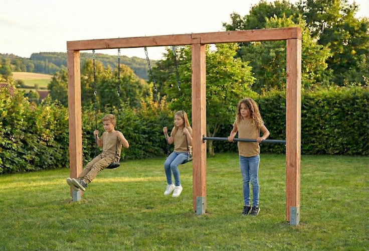 - Douglasienholz-Schaukelgestell mit 14 x 14 cm dicken Pfosten
