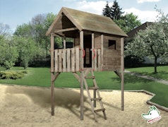 Stelzenhaus: Ein Stelzenhaus ist ein Spielturm, der auf Stelzen steht. Das Stelzenhaus hat meist eine Plattform, eine Rutsche und eine Leiter.