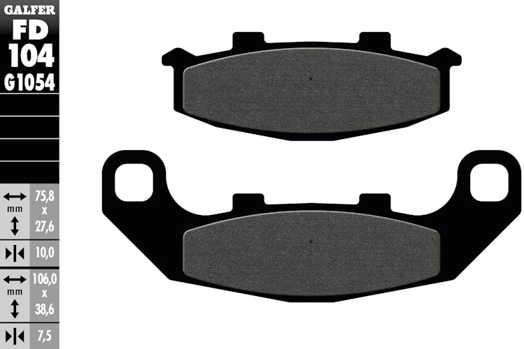 Zertifizierter GALFER Bremsbelag FD104 im Satz. Organisches Standard-Material auf Stahl für höchste Sicherheit und Zuverlässigkeit jenseits der Norm.
