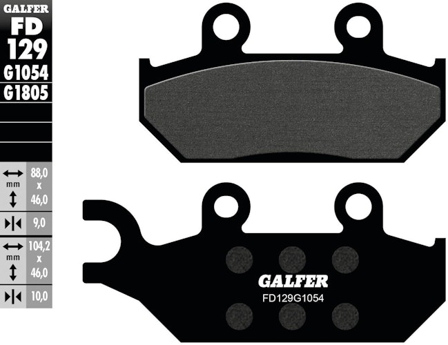 Hochwertiger GALFER FD129 Bremsbelag aus organischem G1054. Satzweise Lieferung in Schwarz aus Stahl für höchste handwerkliche Qualität.