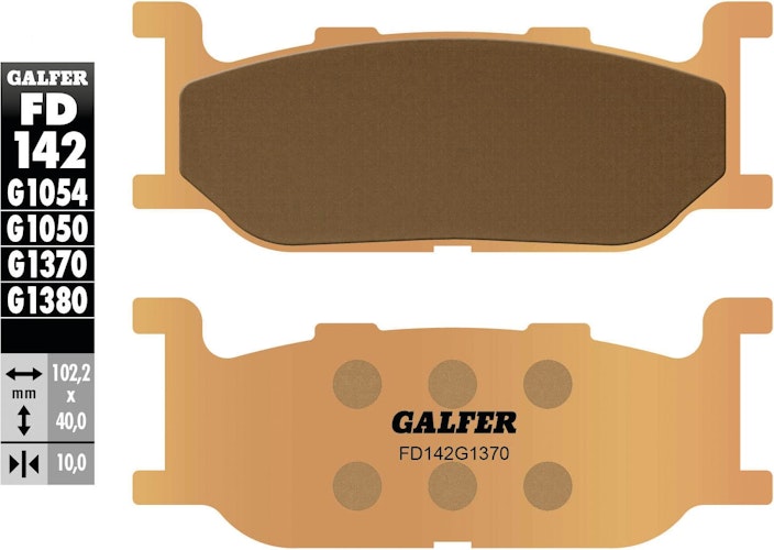 Premium GALFER FD142 Sintermetall-Bremsbelag G1370. Satzweise Lieferung in Gold für maximale Sicherheit jenseits der ECE-R-90-Vorgaben für den Straßeneinsatz.
