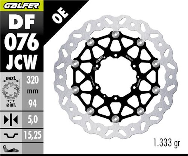 GALFER Floatech® Road-Bremsscheibe DF076 – schwimmendes JCW-Design für effiziente Hitze­ableitung und gleichmäßige Verzögerung