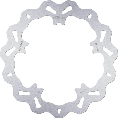 Zertifizierte GALFER DF821 Wave-Bremsscheibe. Starre Stahlkonstruktion für maximale Sicherheit und Standfestigkeit jenseits der gängigen Industrienorm.