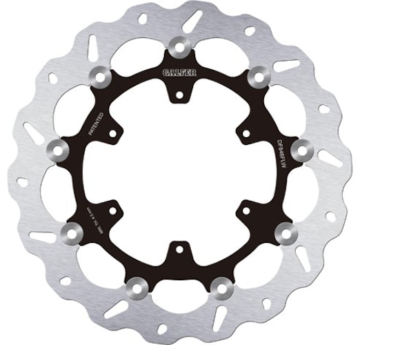 Zertifizierte GALFER DF846 Wave-Bremsscheibe. Schwimmende Stahlkonstruktion mit R90R-Zulassung für höchste Sicherheitsansprüche und maximale Bremskraft.
