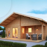 Gartenhaus: Eine größere, isolierte Konstruktion mit Fenstern und Türen, die als Freizeit- oder Arbeitsraum im Garten genutzt werden kann.