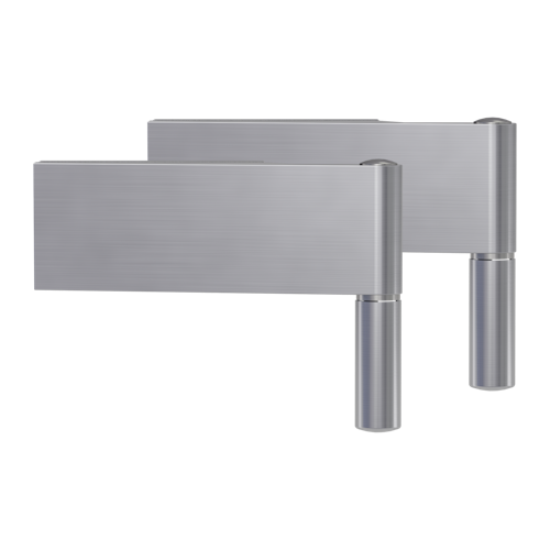 Das Griffwerk Bandpaar für Ganzglastüren, passend zu den Schlosskästen Creativo / Puristo / Jette Vision in der Ausführung Studio, inkl. Türbandhülsen, für Holzzargen in Edelstahl-Optik matt