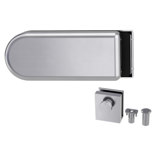 Griffwerk CLASSICO 1.0 -Edelstahl matt -Ganzglas- türbeschlagset -2-teiliger Bandsatz -ohne Griff mit Türschnäpper/Feststellset -Gegenkasten