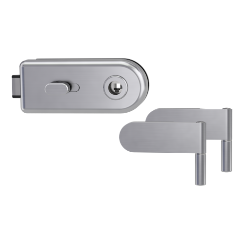 Griffwerk CLASSICO 1.0 -Edelstahl matt Ganzglastürbeschlagset -2-teiliger Bandsatz -ohne Griff -PZ, WC Knaufzylinder Schlossseite