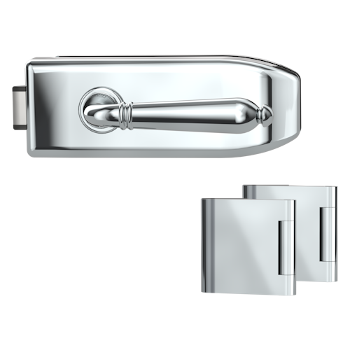 Griffwerk CREATIVO 1.0 -Edelstahl poliert Ganzglastürbeschlagset -3-teiliger Bandsatz -mit Griff CAROLA Schraubt. -CHR -UV