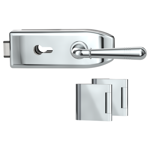 Griffwerk CREATIVO 1.0 -Edelstahl poliert Ganzglastürbeschlagset -3-teiliger Bandsatz -mit Griff FABIA Schraubt. -CHR -PZ