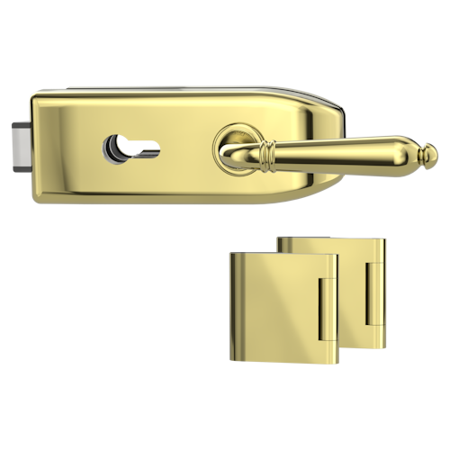 Griffwerk CREATIVO 1.0 -Messing Optik Ganzglastürbeschlagset -3-teiliger Bandsatz -mit Griff CAROLA ME-O -PZ