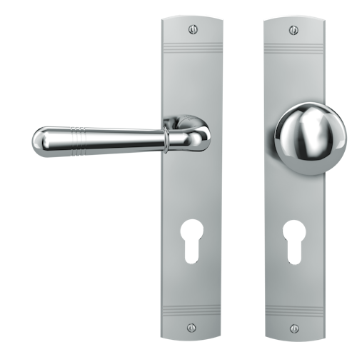 Griffwerk FABIO -Chrom Langschild-Garnitur -sichtbar verschraubt -Knopf R21 -WL -TS 40-45mm