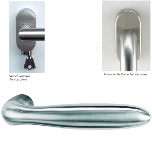 Auswahloption: Nur Fenstergriff, Fenstergriff mit unverschließbarer Fensterolive. Sollten Sie eine verschließbare Fensterolive wünschen bestellen Sie diese bitte hier mit.