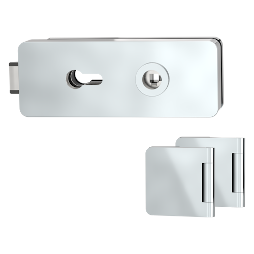 Griffwerk GATE | DESIGN MANUFAKTUR 1.0 -Edelstahl Optik poliert -Ganzglastürbeschlagset -3-teiliger Bandsatz -ohne Griff -PZ