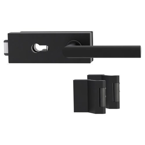 Griffwerk Glastürbeschlag PURISTO S mit Griff VAYA 137 TRI Profilzylinder Flüster 3-tlg. Bänder VAYA 137 TRI Graphitschwarz