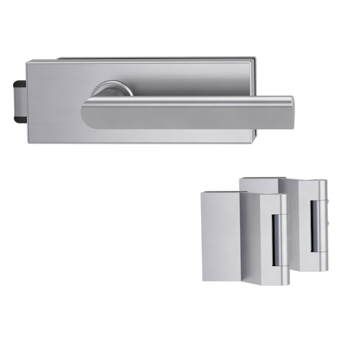 Griffwerk Glastürbeschlag PURISTO S mit Griff VAYA 137 TRI unverschließbar Flüster 3-tlg. Bänder VAYA 137 TRI Edelstahl matt