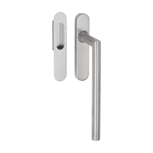 Griffwerk Hebe-Schiebetür-Garnitur LUCIA -Edelstahl matt UV, außen mit Muschel, M5-Verschraubung, 90° Rastung