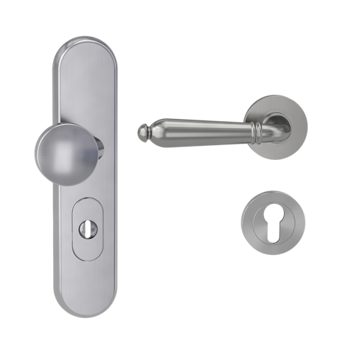 GRIFFWERK Edelstahl Kombi-Schutzbeschlag geeignet für den Einsatz im Privat- und Objektbereich, geprüft und zertifiziert nach DIN EN 1906 Anhang A und DIN 18257