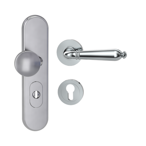 Griffwerk Kombi-Schutzbeschlag TITANO SB_882 mit Griff CAROLA 72mm Zylinderabdeckung Tür 38-50mm R CAROLA Chrom