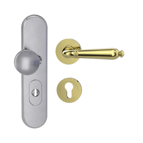 Griffwerk Kombi-Schutzbeschlag TITANO SB_882 mit Griff CAROLA 72mm Zylinderabdeckung Tür 38-50mm R CAROLA Messing-Optik