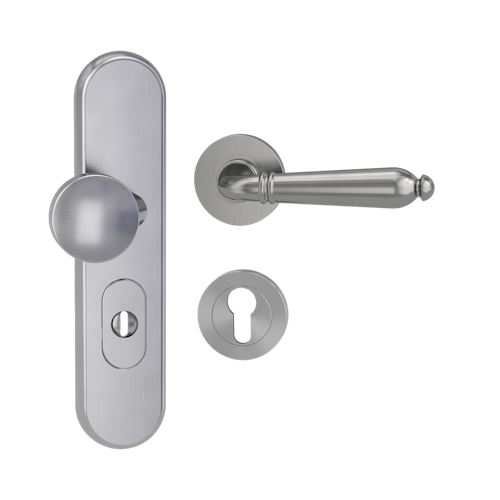 GRIFFWERK Edelstahl Kombi-Schutzbeschlag geeignet für den Einsatz im Privat- und Objektbereich, geprüft und zertifiziert nach DIN EN 1906 Anhang A und DIN 18257