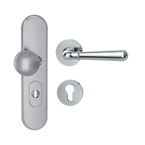 Griffwerk Kombi-Schutzbeschlag TITANO SB_882 mit Griff FABIA 72mm Zylinderabdeckung Tür 38-50mm R FABIA Chrom