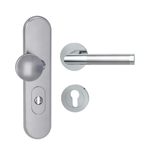 GRIFFWERK Edelstahl Kombi-Schutzbeschlag geeignet für den Einsatz im Privat- und Objektbereich, geprüft und zertifiziert nach DIN EN 1906 Anhang A und DIN 18257