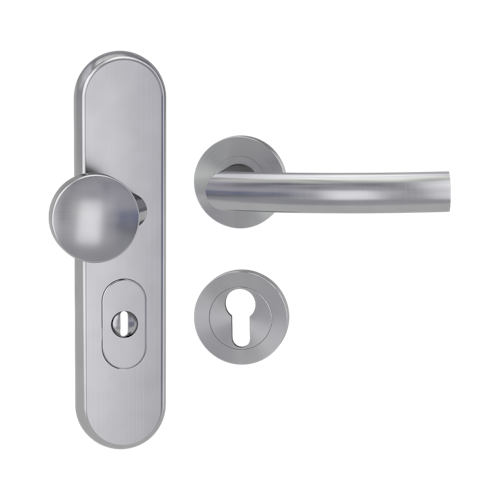 Griffwerk Kombi-Schutzbeschlag TITANO SB_882 mit Griff LORITA PROF 72mm Zylinderabdeckung Tür 38-50mm R LORITA PROF Edelstahl matt