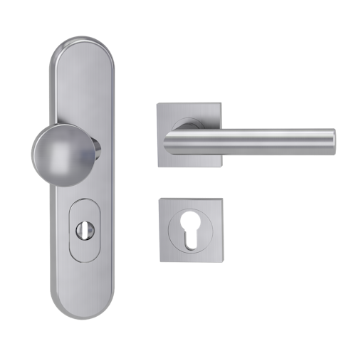 Griffwerk Kombi-Schutzbeschlag TITANO SB_882 mit Griff LUCIA 72mm Zylinderabdeckung Tür 38-50mm LUCIA PROF eckig Edelstahl matt