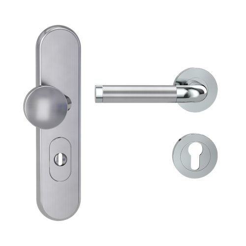 GRIFFWERK Edelstahl Kombi-Schutzbeschlag geeignet für den Einsatz im Privat- und Objektbereich, geprüft und zertifiziert nach DIN EN 1906 Anhang A und DIN 18257