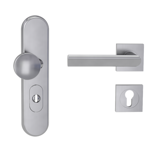 Griffwerk Kombi-Schutzbeschlag TITANO SB_882 mit Griff TRI 134 72mm Zylinderabdeckung Tür 38-50mm L TRI 134 eckig Edelstahl matt