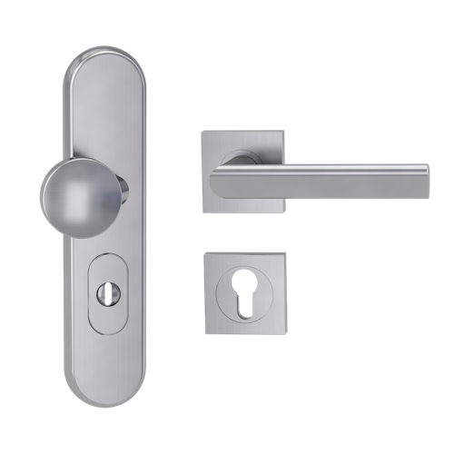 Griffwerk Kombi-Schutzbeschlag TITANO SB_882 mit Griff TRI 134 72mm Zylinderabdeckung Tür 38-50mm R TRI 134 eckig Edelstahl matt