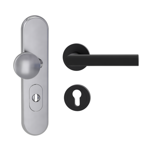 Griffwerk Kombi-Schutzbeschlag TITANO SB_882 mit Griff TRI 134 72mm Zylinderabdeckung Tür 38-50mm R TRI 134 Graphitschwarz
